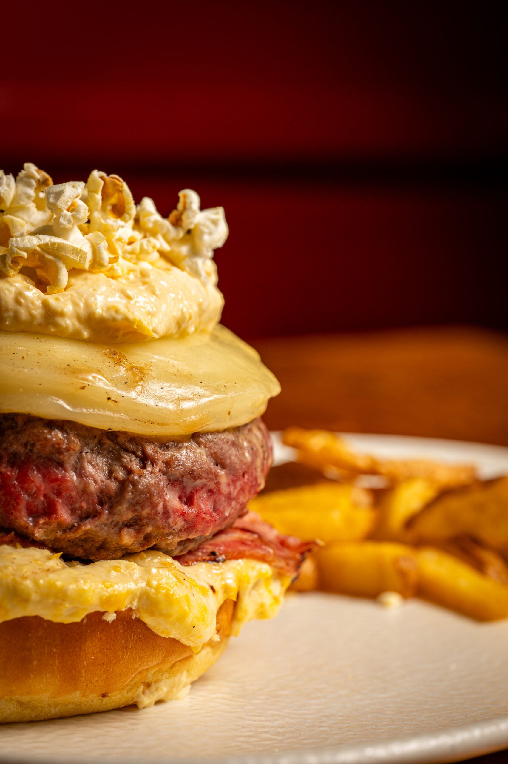 nuestra deliciosa salsa de maiz y topping de palomitas crujientes.